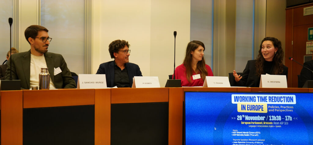 This public event, which was hosted by the EFA-Green Group in European Parliament and supported by the European Work-Time Network, brought together researchers, trade unions, civil society, and policymakers to explore the promise of working time reduction as a path toward more meaningful work, sustainability, and economic justice.